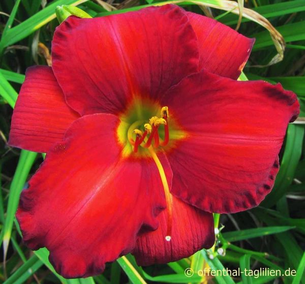 Die Taglilie/Hemerocallis ‚Chicago Apache‘ ist ein Klassiker und eine hervorragende Standardsorte von James Marsh! Sie ist sehr robust und super wüchsig und sie macht immer eine gute Figur. Auch ihre ganz leicht bläulich angehauchten, scharlachroten Blüten sind immer fotogen und zeigen sich stets von ihrer besten Seite!